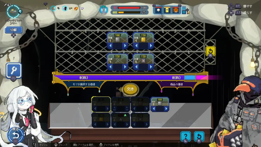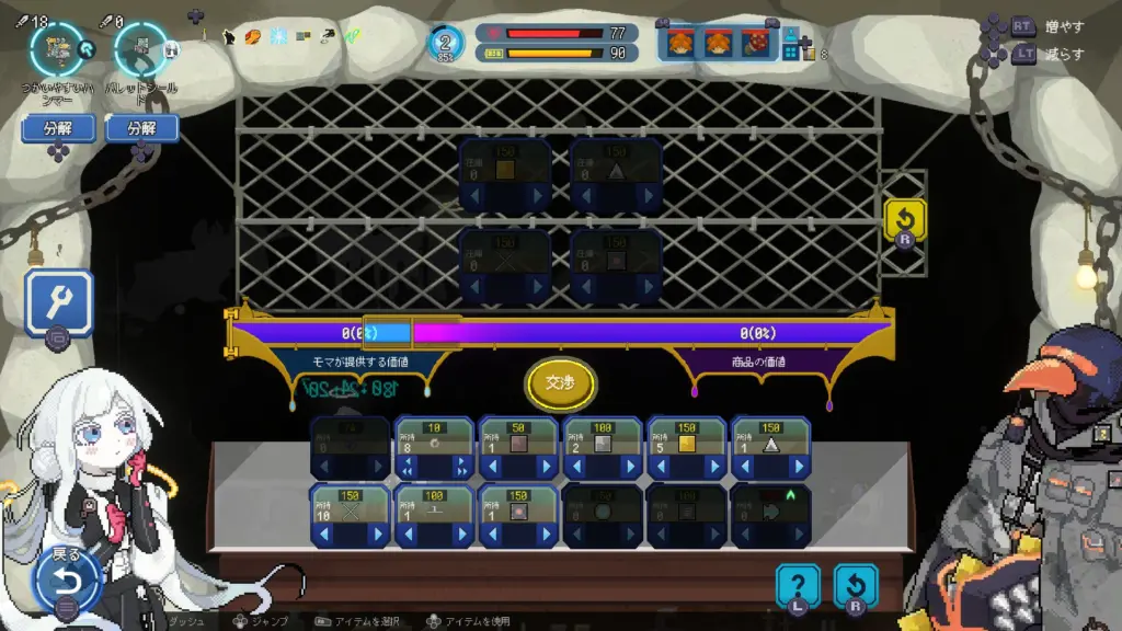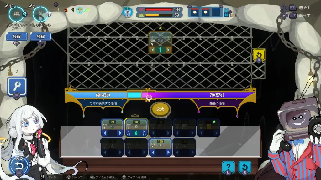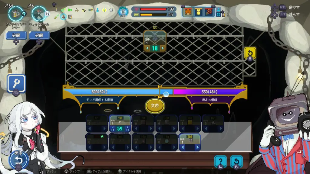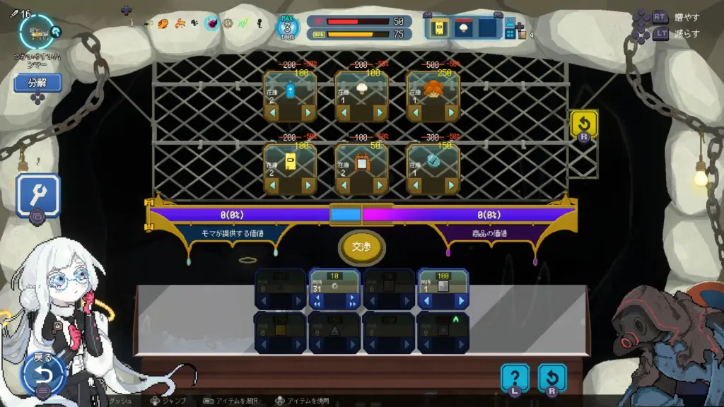 こちらが提供する価値が常に低くなるように商品を交換します。一度に複数交換するのではなく、1つ1つ交換しましょう。また、店員の機嫌は1回のゲームで継続されるため、よく出会うトレーダーを相手に交換すると良いと思います。