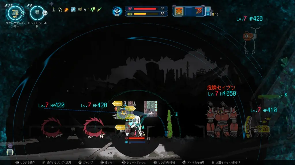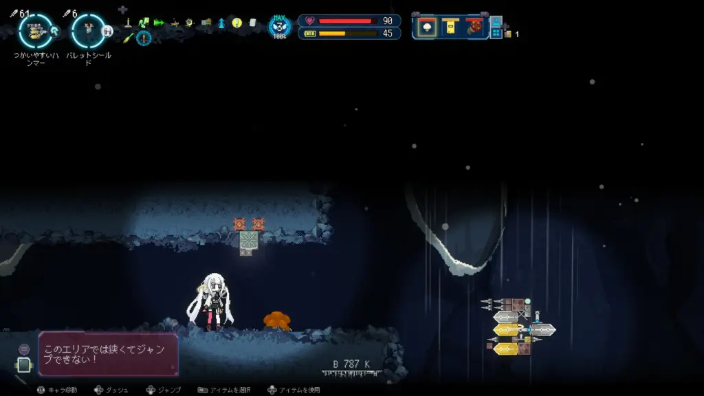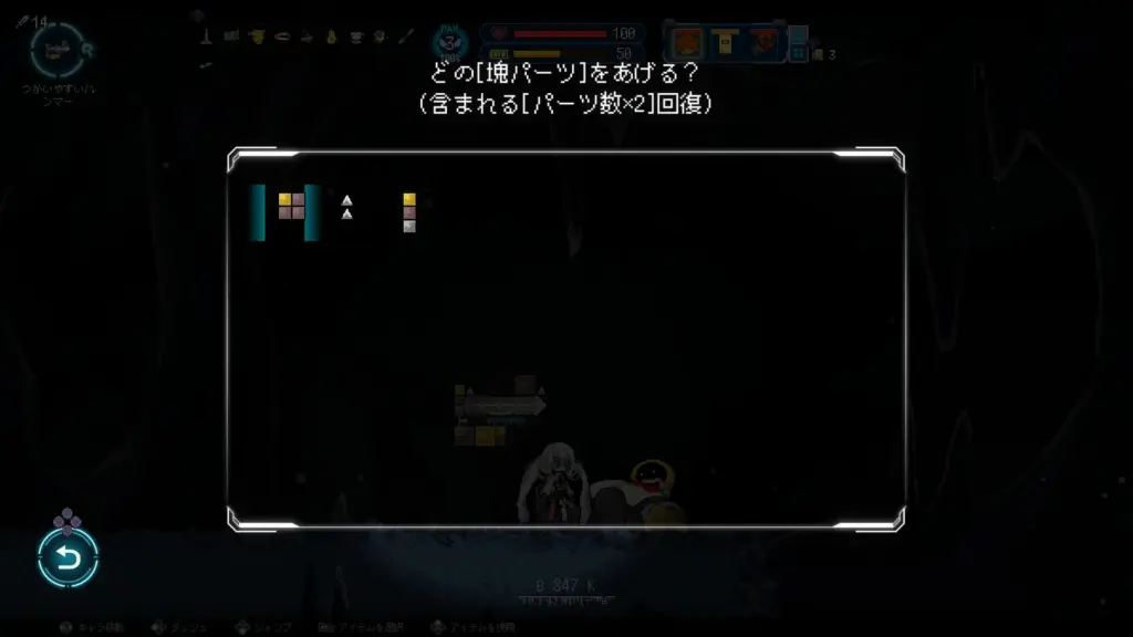 普通セイブツが現れるエリアではジャンプが出来ないほど天井が低いことがあります。このときに、敵を押し込み崖から突き落とすと手に入ります。