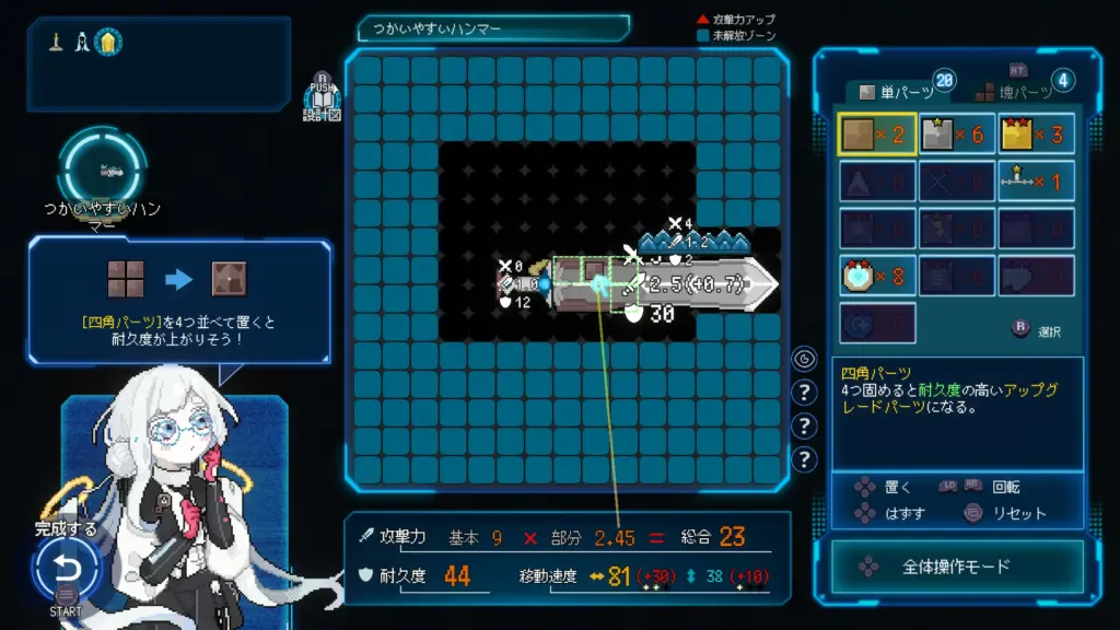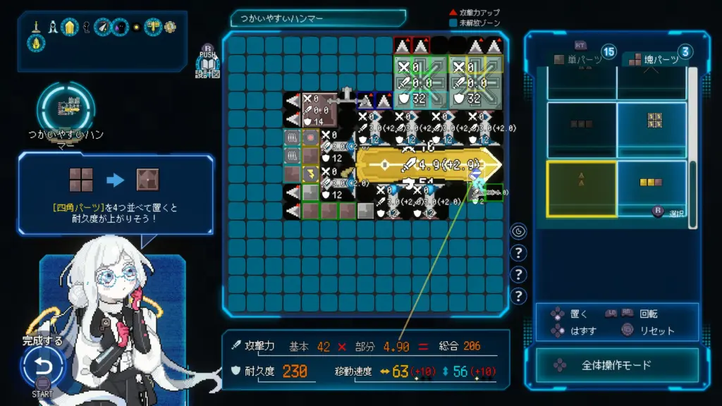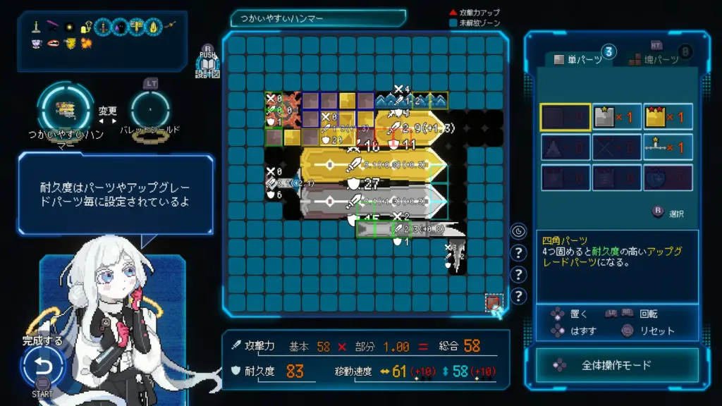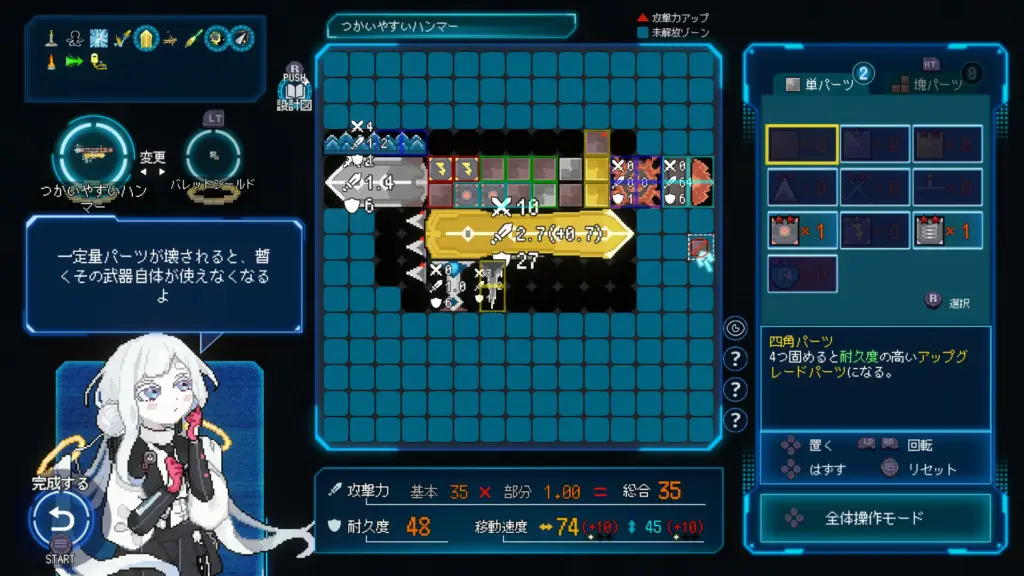 攻撃力60以上の銃口で攻撃すると手に入ります。横長の端に銃口を配置し、後ろにパーツを配置します。金のパーツなどであれば攻撃力が増します。
