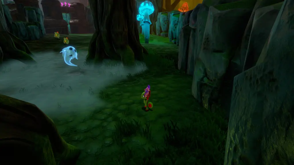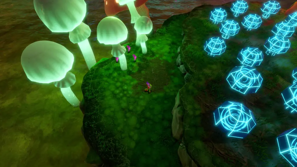 『Wally the Trolly』に話しかけ、近くの光るキノコをソーナースプロージョンで一気に壊します。