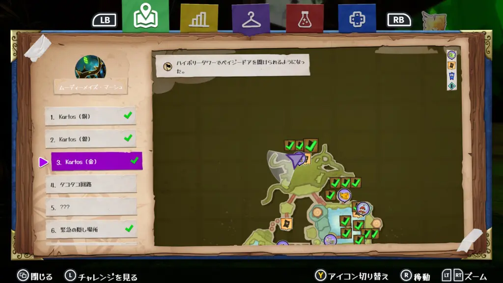 Kartosに話しかけ、ミニゲームでジェムを全て集めます。ジェムを一定数集めるとペイジーが手に入り、全て集めるとペイジーが3つ手に入ります。