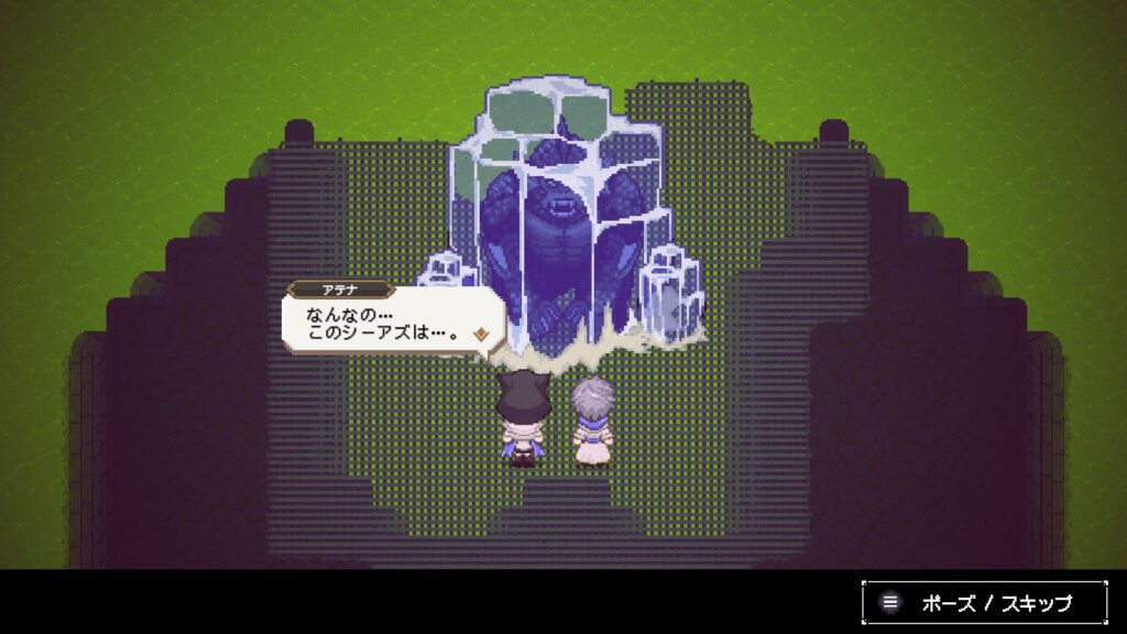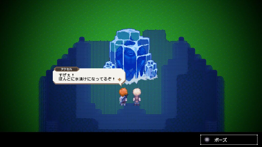 4. 隠し通路の奥に進むと、氷漬けのシーアズが見つかるのでアクセルのフレイムロッドで氷を溶かすとボス『最終兵器 しんじ』と戦います。